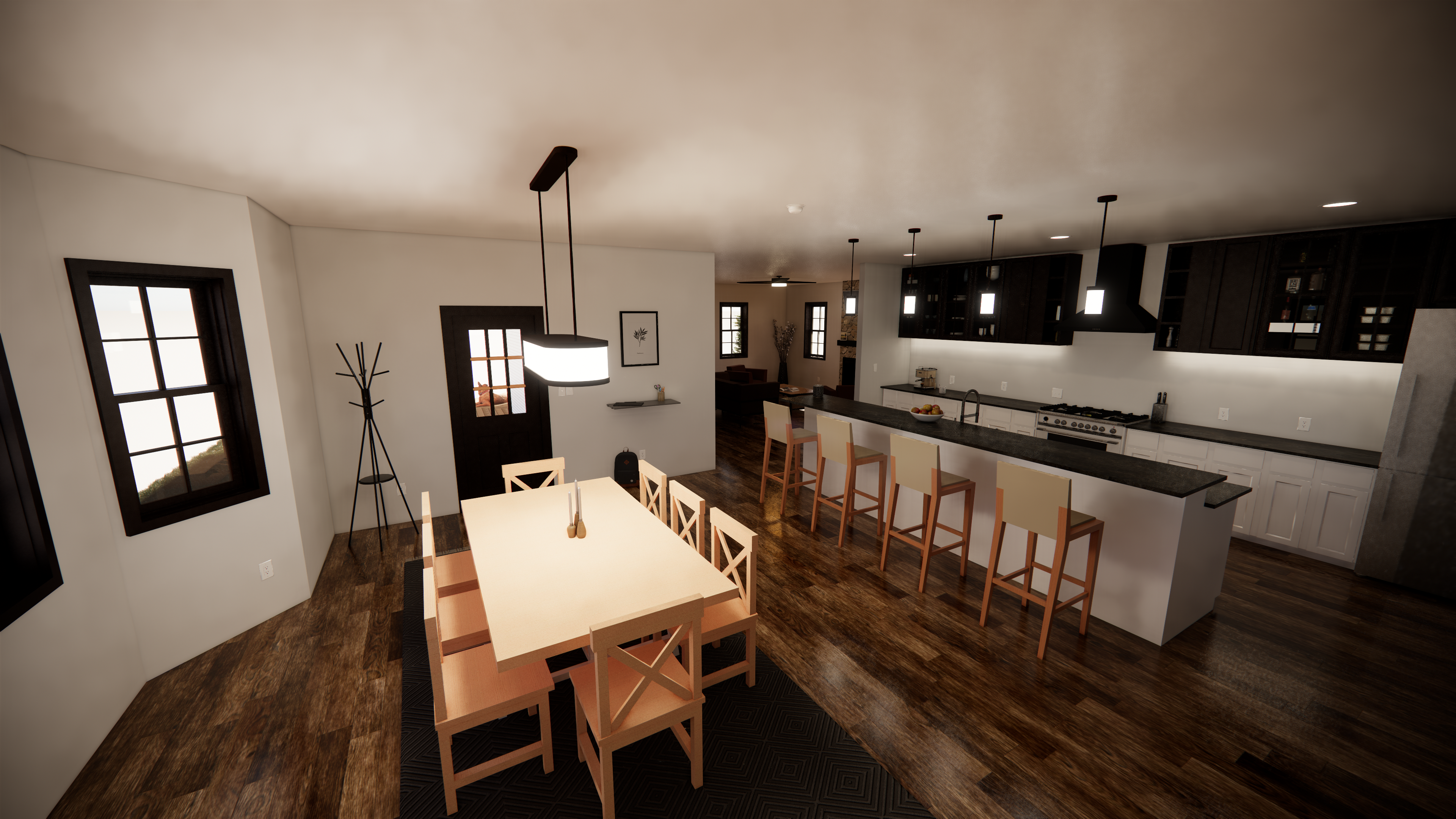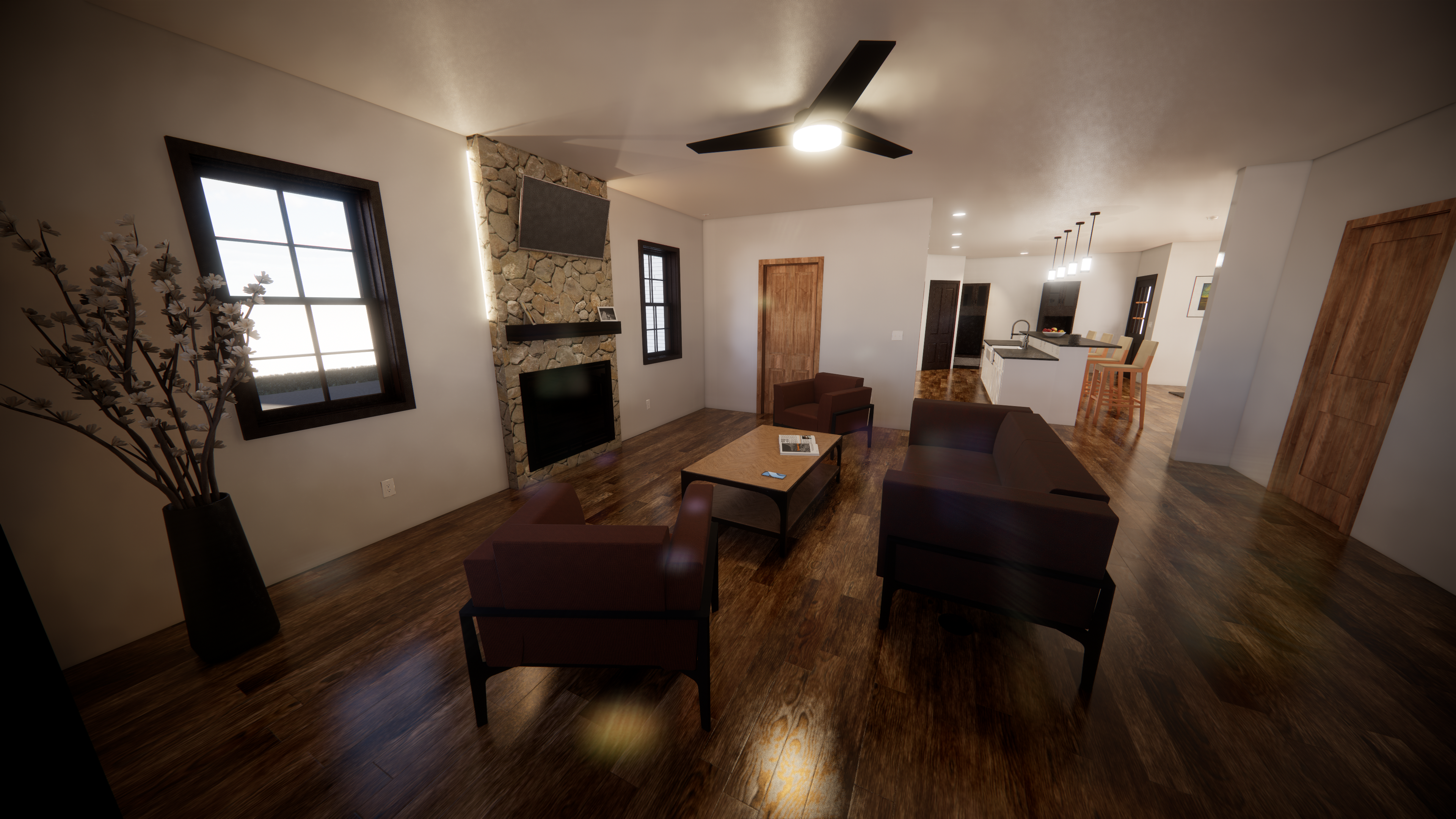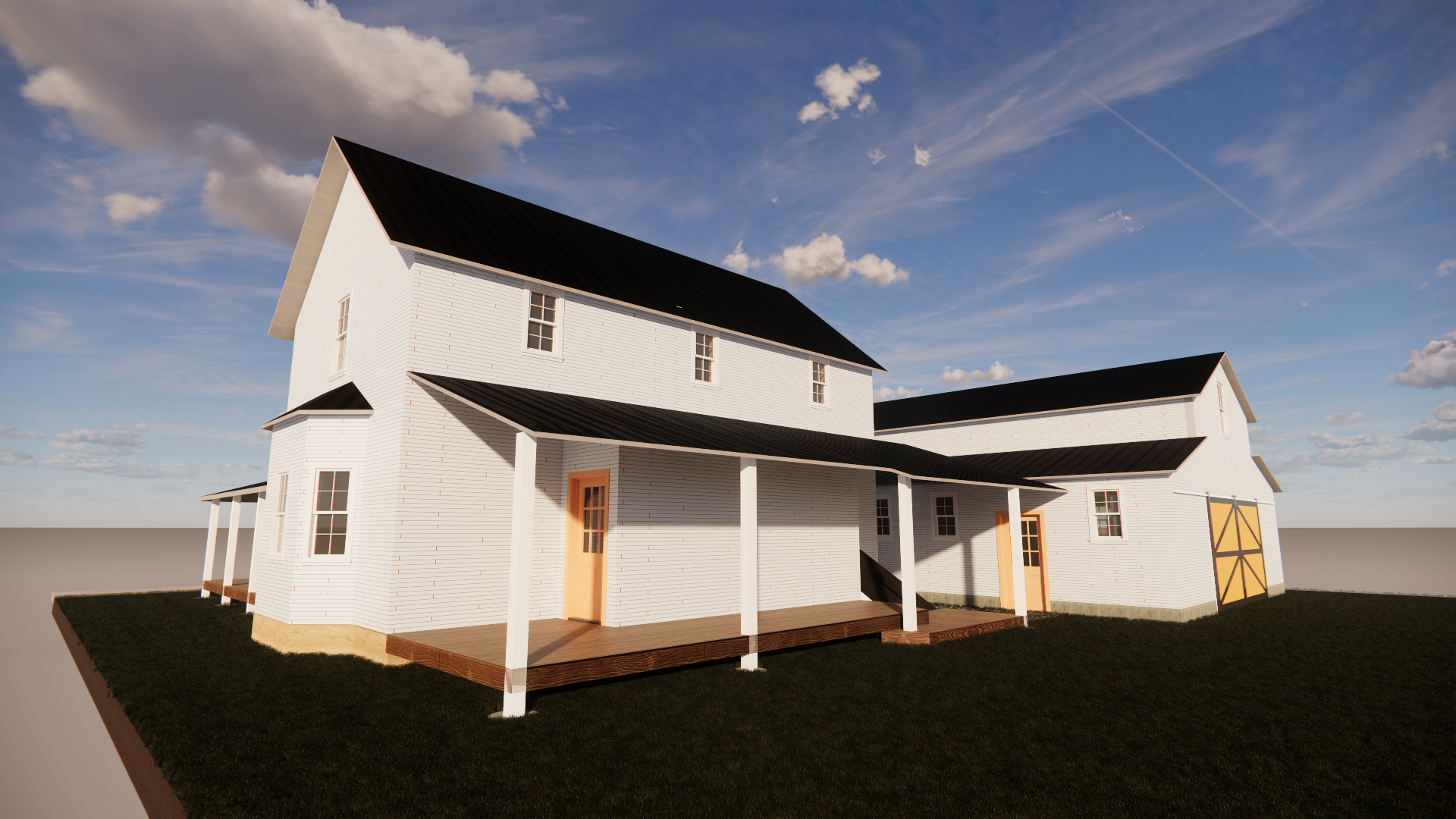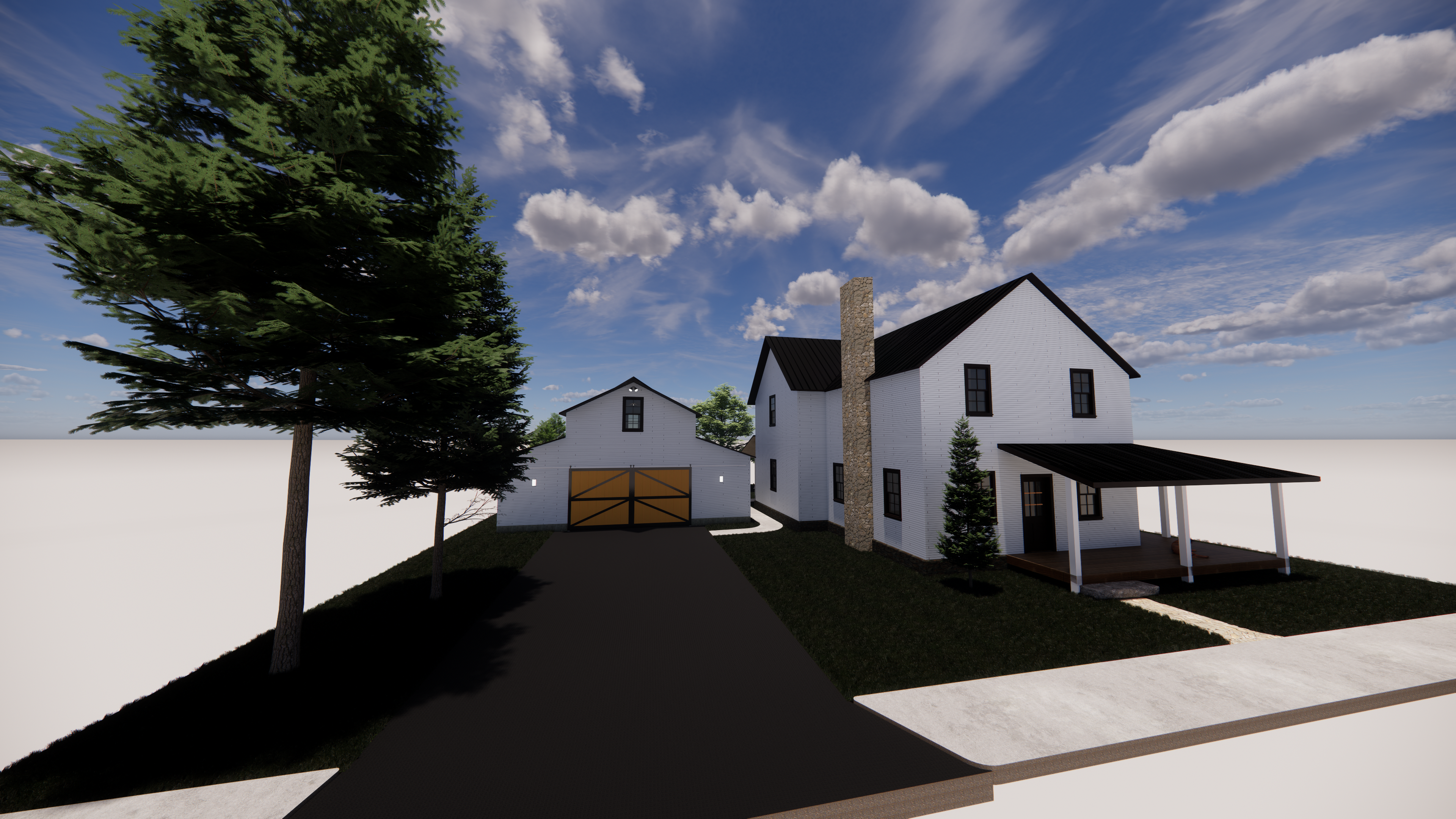 OBJECTIVE: Choose an architectural style. Create a 3br/2ba 2-story single-family home with a garage. Fulfill client's wishes to have designated office space, hobbyist brewery space, and greenhouse