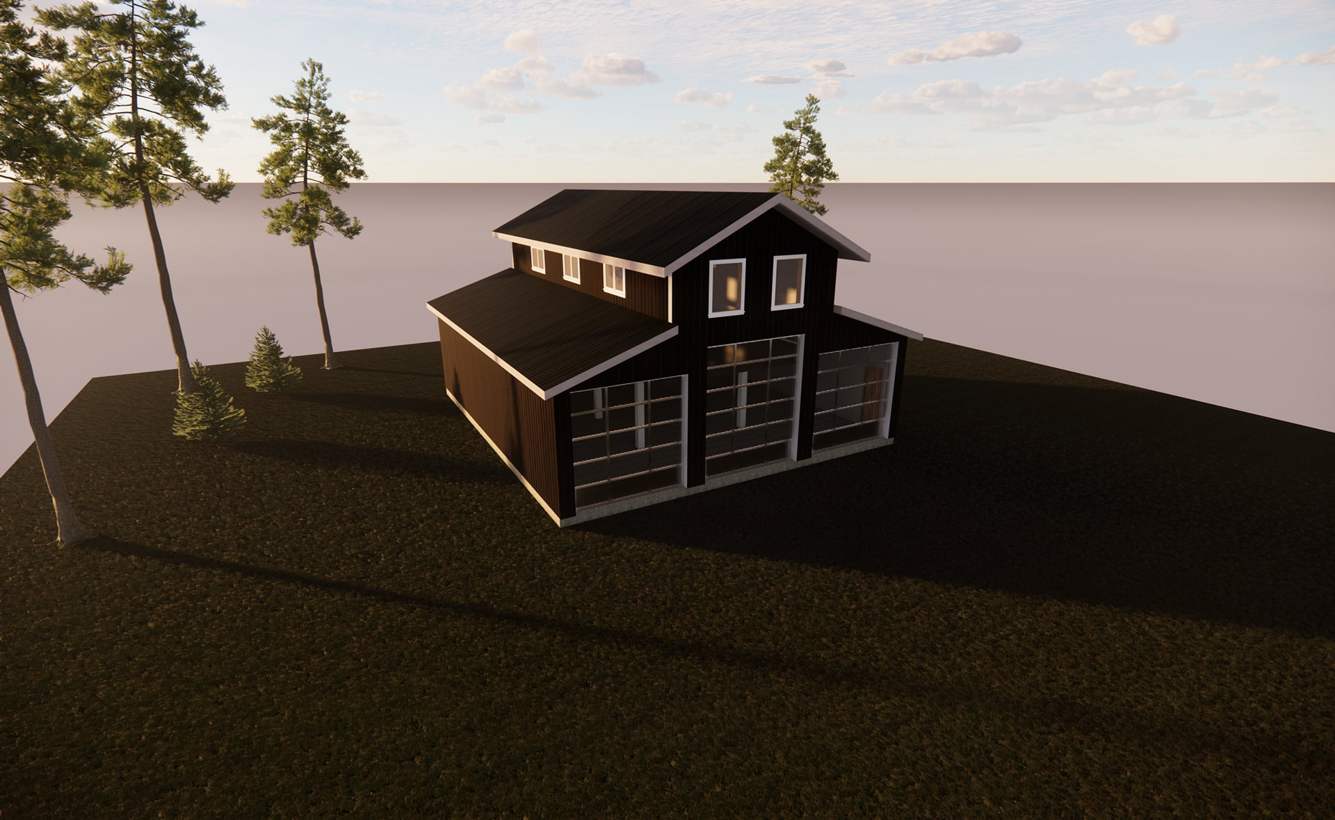 OBJECTIVE: Client requested barn style garage with x3 large bay doors with finished man-cave upstairs.