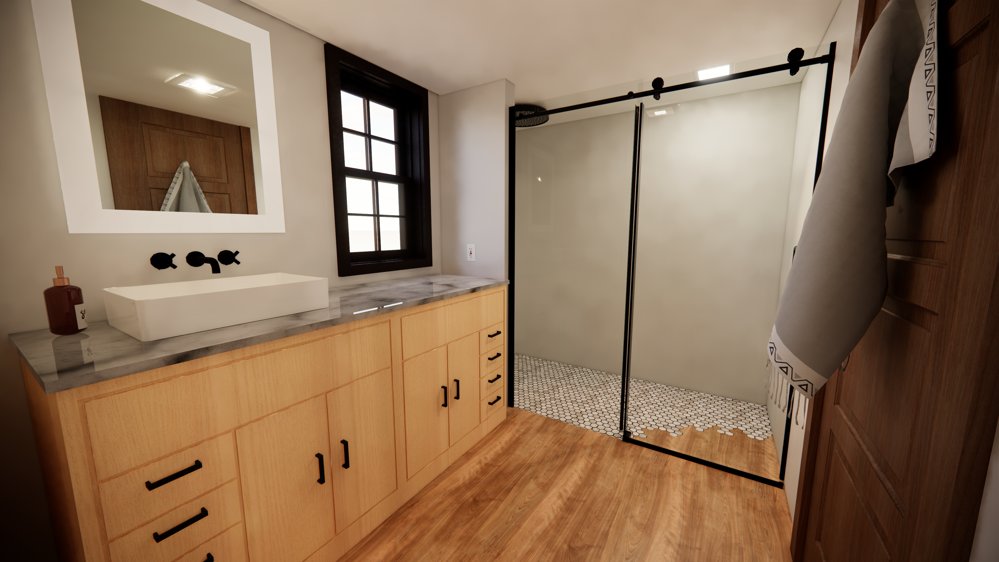 OBJECTIVE: Choose an architectural style. Create a 3br/2ba 2-story single-family home with a garage. Fulfill client's wishes to have designated office space, hobbyist brewery space, and greenhouse